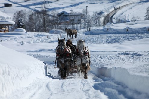 Unser Familienunternehmen bietet im Winter romantische Pferdeschlittenfahrten durch traumhafte Winterlandschaften.